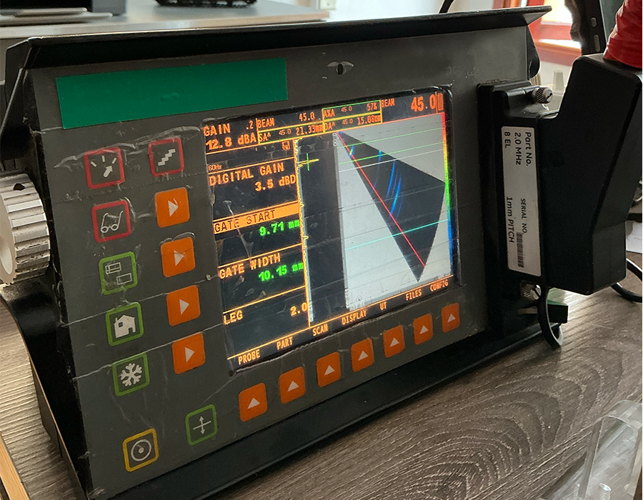 Es una técnica avanzada de Ensayo No Destructivo que usa una sonda con múltiples elementos piezoeléctricos para controlar electrónicamente el haz ultrasónico, permitiendo enfocar y dirigir el sonido a diferentes ángulos y profundidades lo que agiliza la inspección de componentes complejos para detectar defectos internos grietas, inclusiones)y medir espesores con gran precisión, generando imágenes detalladas